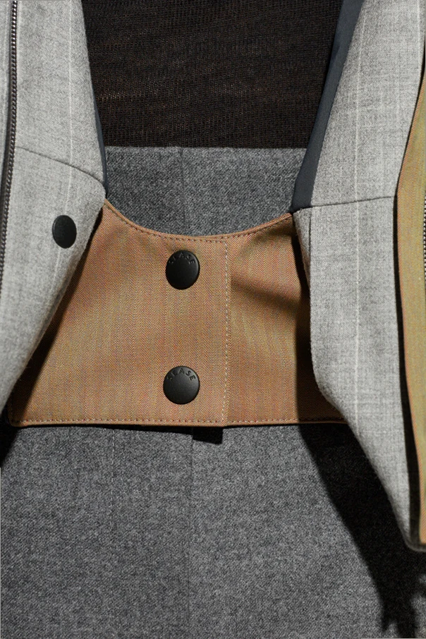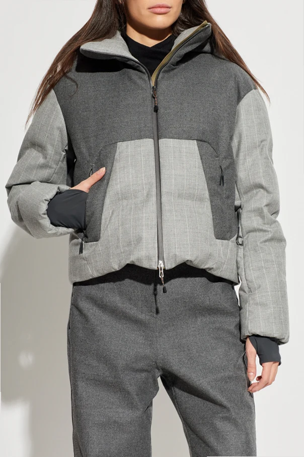 Krótki, lekko pudełkowy krój z wyrazistą talią oraz anatomicznie profilowaną linią ramion podkreśla sylwetkę i zapewnia pełną swobodę ruchów. Unikatowy blokowy układ paneli z subtelnym wzorem w jasne prążki nadaje kurtce wyrafinowany charakter.
