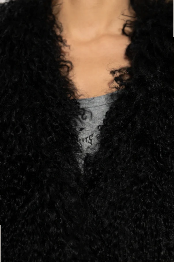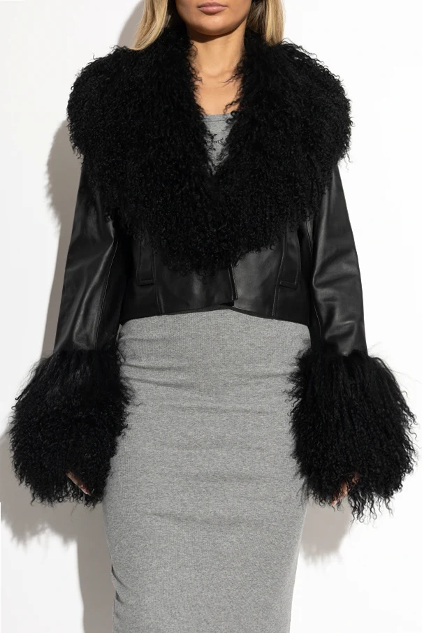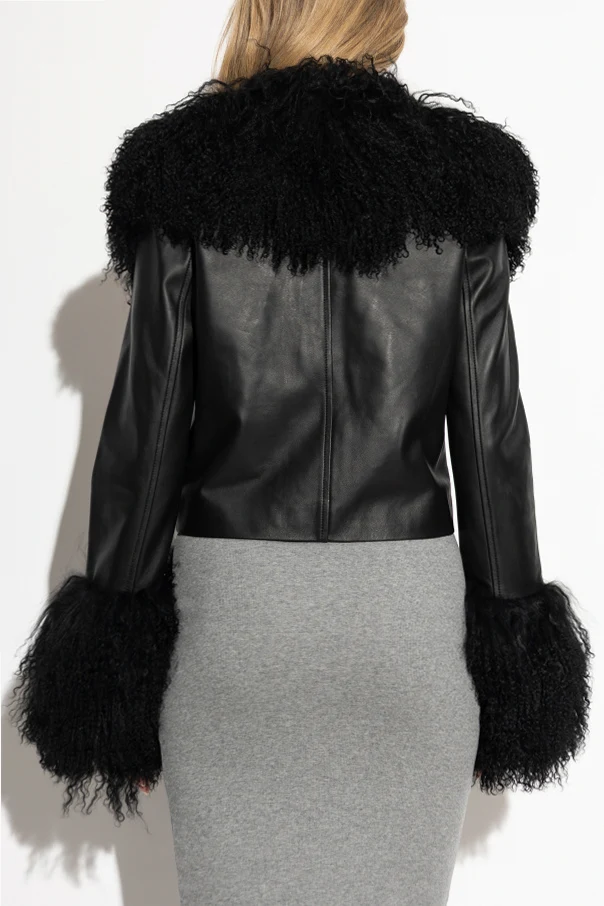 Skórzana kurtka Mim marki STAND STUDIO to esencja wyrafinowanej elegancji i nowoczesnego minimalizmu. Wykonana z naturalnie połyskującej, czarnej skóry jagnięcej, zachwyca nie tylko wyraźnie pudełkowym, skróconym fasonem, lecz także niezwykle okazałym kołnierzem oraz mankietami z puszystego futra owczego o kędzierzawej strukturze. Takie detale nadają jej luksusowego, wyjątkowo wieczorowego charakteru.