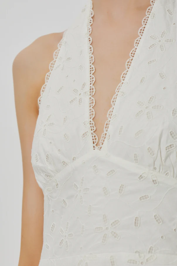 Ażurowa sukienka ‘Salma’ to wyrafinowana propozycja dla koneserek wysmakowanej elegancji. Jej biały kolor podkreśla szlachetność oraz świeżość stylizacji, stając się kwintesencją klasyki w nowoczesnym wydaniu.