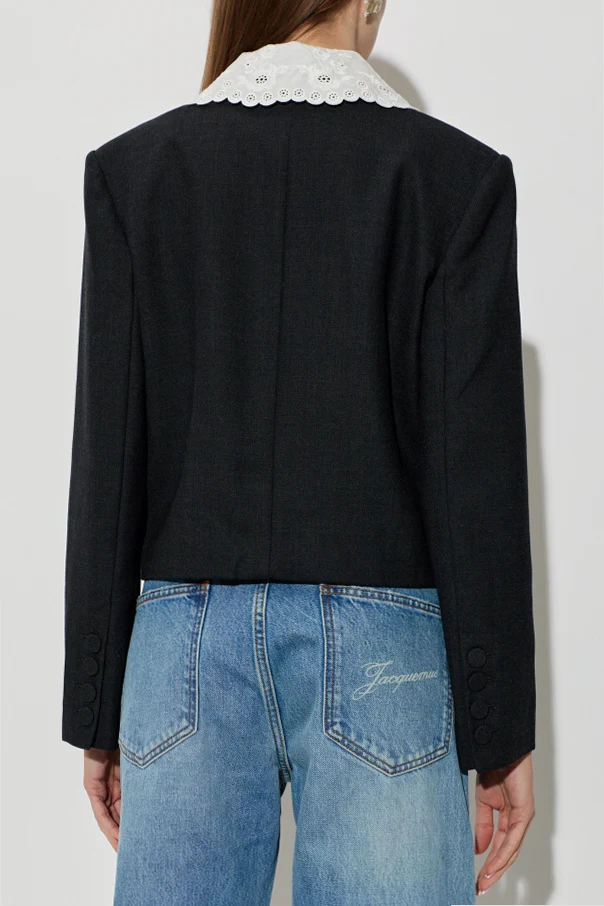 Marynarka z odpinanym kołnierzem to kwintesencja współczesnej elegancji w wydaniu marki Self-Portrait. Jej szary , chłodny odcień w połączeniu z lekko skróconą formą subtelnie podkreśla sylwetkę oraz nadaje stylizacji charakter wysublimowanej nowoczesności. Unikatowe wzornictwo podkreśla niezwykły, biały kołnierz z ozdobnymi haftami i ażurami, który można z łatwością odpiąć, uzyskując odmienny wygląd.