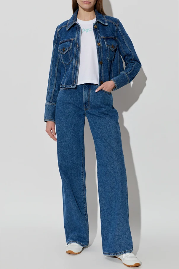Spodnie jeansowe z szerokimi nogawkami to synonim współczesnej interpretacji klasyki, w której prostota spotyka się z odważną formą. Uszyte z najwyższej jakości bawełnianego denimu, prezentują doskonały fason o wysokim stanie, subtelnie wydłużającym sylwetkę i eksponującym talię. Granatowa, gładka tkanina bez przetarć oraz pięć funkcjonalnych kieszeni podkreślają ponadczasowy charakter produktu.