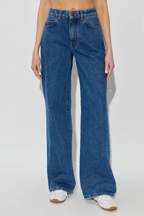 O wyjątkowości modelu świadczą kontrastowe przeszycia w ciemnym odcieniu oraz charakterystyczne elementy sygnaturowe: czarna naszywka z białym napisem „BALMAIN PARIS” oraz detal w kolorze pomarańczowym przy tylnej kieszeni. Szerokie nogawki czynią je nie tylko praktycznym, lecz również niezwykle stylowym wyborem dla koneserów unikalnej, francuskiej mody.