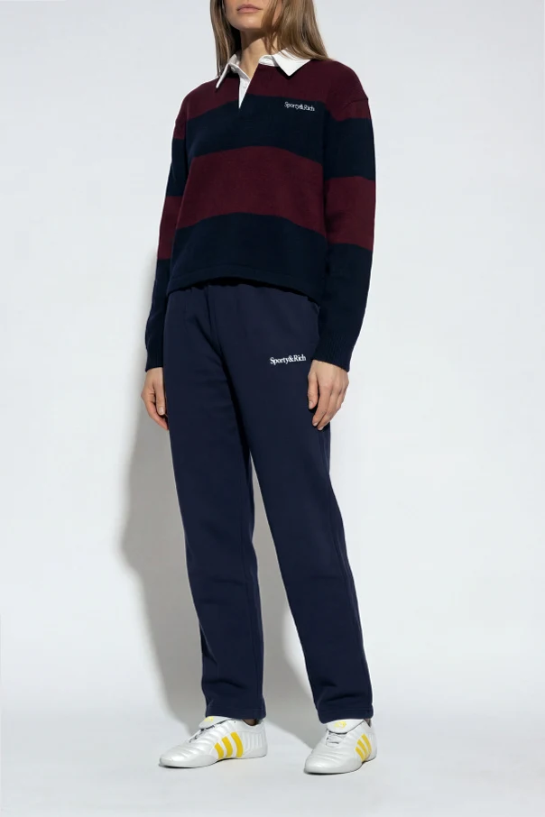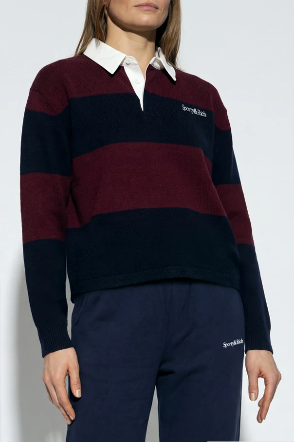 Luksusowa dzianina z kaszmiru i wełny zapewnia niezwykłą miękkość oraz komfort noszenia, a widoczna struktura materiału nadaje swetrowi szlachetnego charakteru. Kontrastujący biały kołnierzyk i delikatnie schowana pod nim plisa z guzikiem to detale świadczące o trosce o każdy szczegół projektu Sporty & Rich.