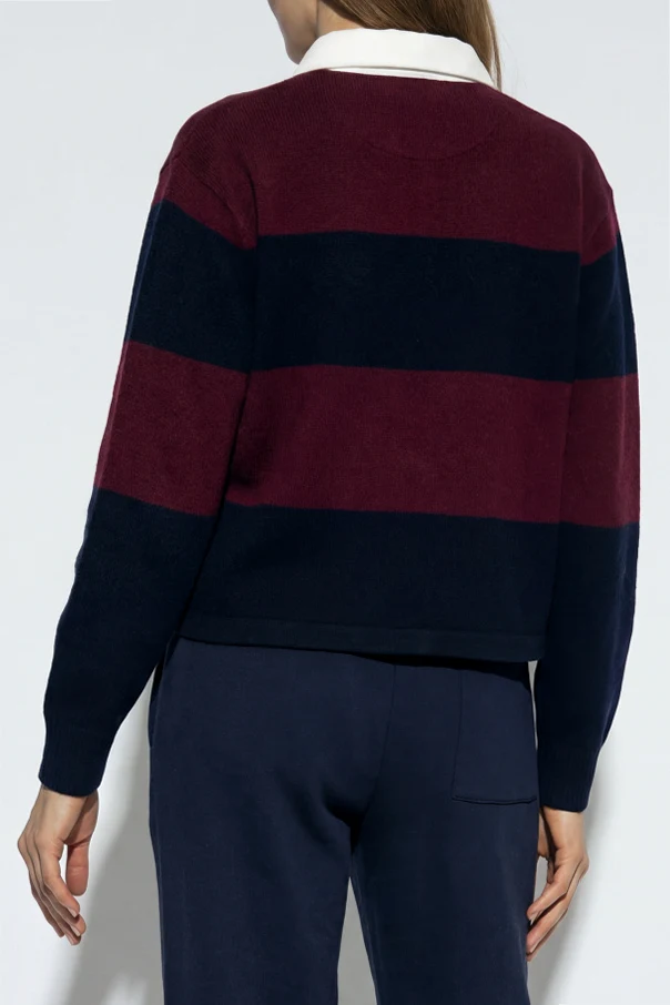 Polo z kolekcji Central Park to wyrafinowany manifest elegancji w codziennym wydaniu. Sweter w kolorze bordo z przeplatającymi się, szerokimi pasami ciemnego granatu to wyraziste, a zarazem ponadczasowe połączenie, podkreślone sportowym charakterem formy rugby polo. Wydłużone rękawy oraz swobodny, lekko oversize’owy fason ze swobodnym dołem eksponują nowoczesną inspirację stylem vintage.