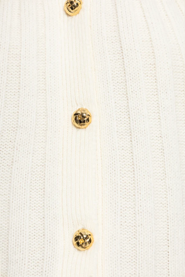 Kremowy odcień kardigana harmonizuje z wyrazistym prążkowanym splotem, który nadaje dzianinie szlachetności oraz niepowtarzalnej faktury. Wysoka jakość naturalnej przędzy, na bazie wełny i kaszmiru, gwarantuje przyjemność noszenia oraz trwałość.