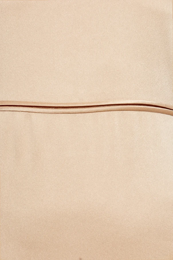 Zabudowany, okrągły dekolt oraz subtelna lamówka dzieląca partie tkaniny podkreślają ekskluzywny charakter projektu. Sukienka wykonana została z luksusowej satyny, będącej kunsztownym połączeniem wiskozy i acetatu, co gwarantuje jedwabistą miękkość oraz nienaganne dopasowanie do sylwetki.