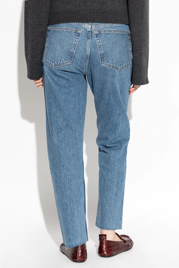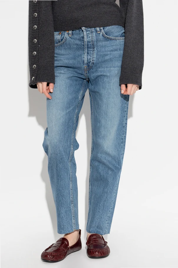 Te jeansy z lekko zwężanymi nogawkami marki RE/DONE to synonim współczesnej elegancji, gdzie klasyka splata się z modowym wyrafinowaniem. Utrzymane w ponadczasowym, niebieskim odcieniu, zachwycają regularnym krojem oraz nogawkami zwężającymi się subtelnie ku dołowi, które zakończone są surowym, postrzępionym wykończeniem, nadając całości lekkości i niepowtarzalnego charakteru.