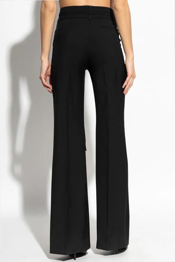 Spodnie Cera marki Sportmax to esencja nowoczesnej elegancji w wyrafinowanym wydaniu. Ich czarny kolor podkreśla ponadczasowy, formalny charakter, a szeroka, prosta nogawka typu wide-leg subtelnie wydłuża sylwetkę i dodaje lekkości każdemu ruchowi. Wysoki stan z efektownym przeszyciem oraz szlufkami akcentuje talię i tworzy harmonijną linię.