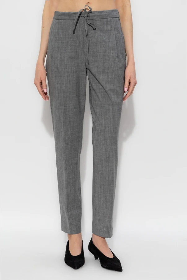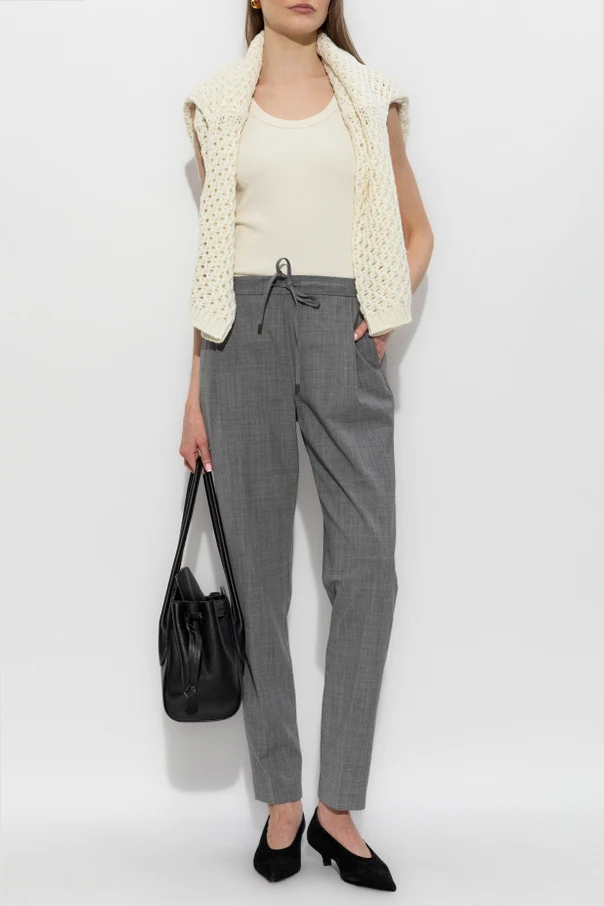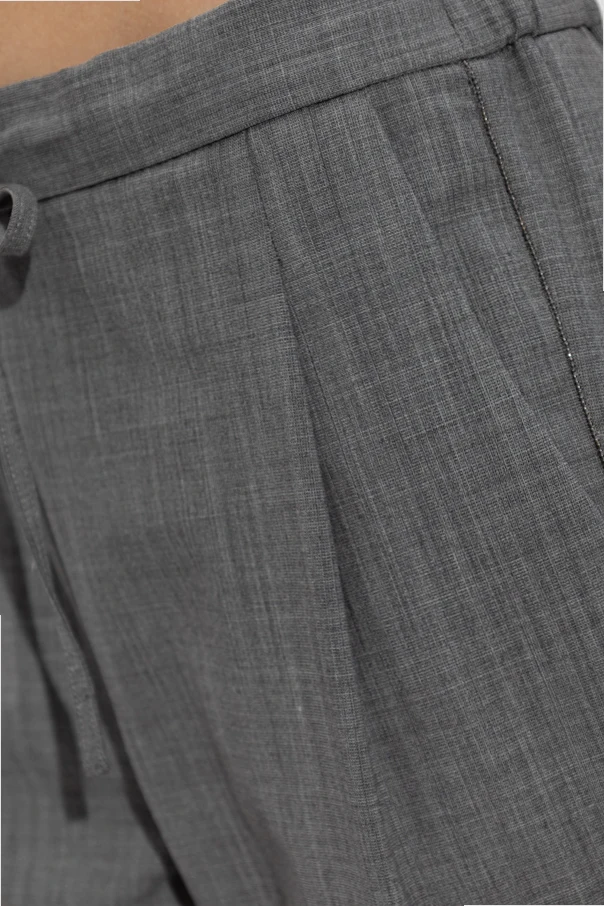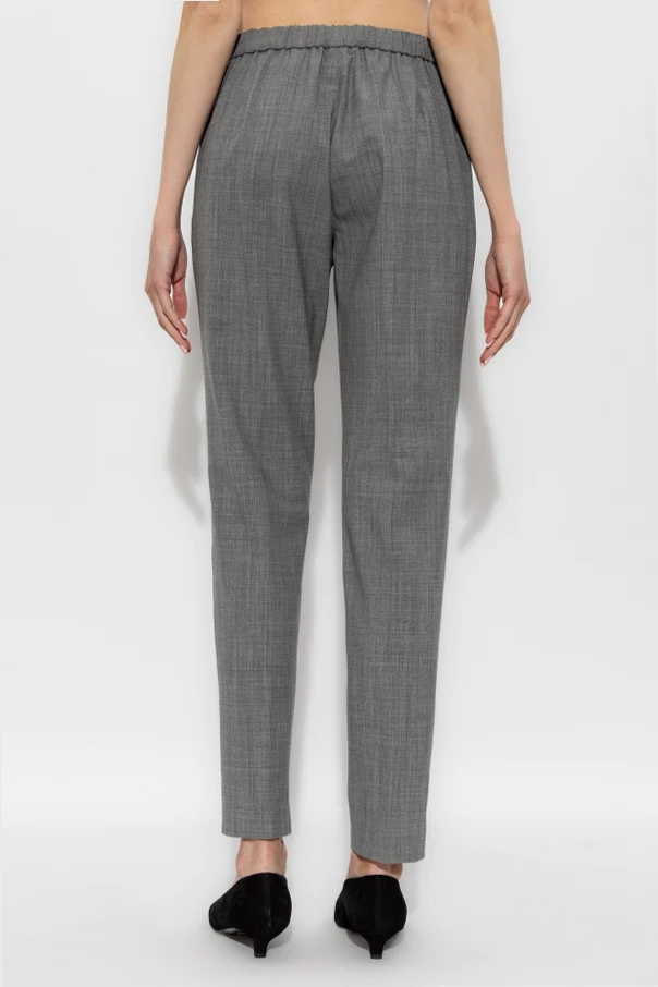 Wełniane spodnie w kant marki Fabiana Filippi zachwycają szlachetną prostotą oraz bezkompromisową jakością wykonania. Klasyczny, prosty fason uzupełniono lekko zwężającą się nogawką oraz starannie zaprasowanym kantem, co podkreśla wyrafinowany charakter produktu. Subtelna melanżowa struktura tkaniny uwydatnia naturalną, matową fakturę wysokogatunkowej wełny, oferując niezrównany komfort oraz przewiewność. Dyskretne, boczne kieszenie oraz elastyczna talia z nowoczesnym wiązaniem tworzą harmonijne połączenie elegancji i praktyczności, a wszystkie przeszycia zwracają uwagę niezwykłą dbałością o detal. Brak widocznych logo oraz szary kolor podkreślają ponadczasowy, uniwersalny styl.
