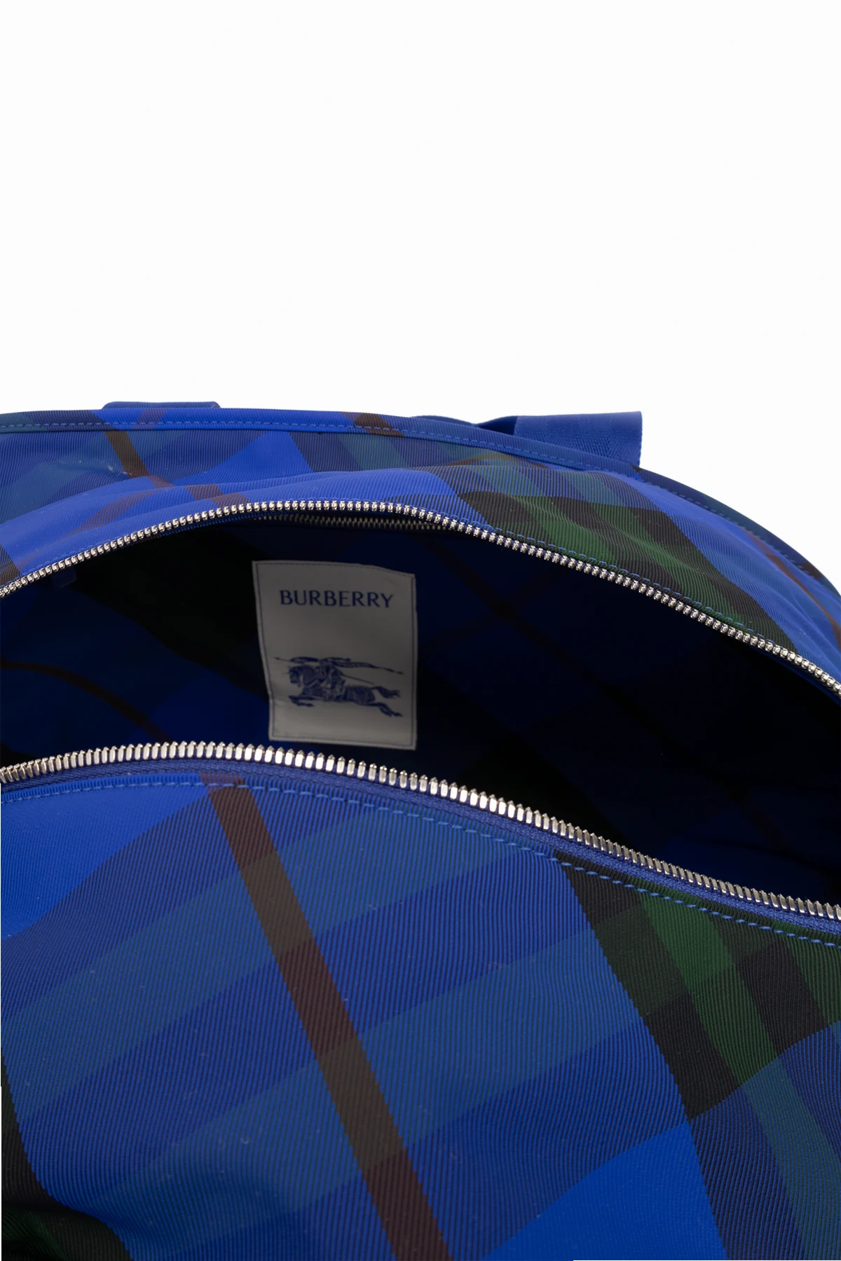 Przedstawiamy Państwu torbę podręczną Burberry, która jest kwintesencją elegancji połączonej z praktycznością. Dominujący kolor niebieski oraz wzór w kratę, łączący odcienie niebieskiego, zielonego oraz czerwonego, nawiązuje do klasycznego stylu tartan, będąc jednocześnie odzwierciedleniem ponadczasowej mody.