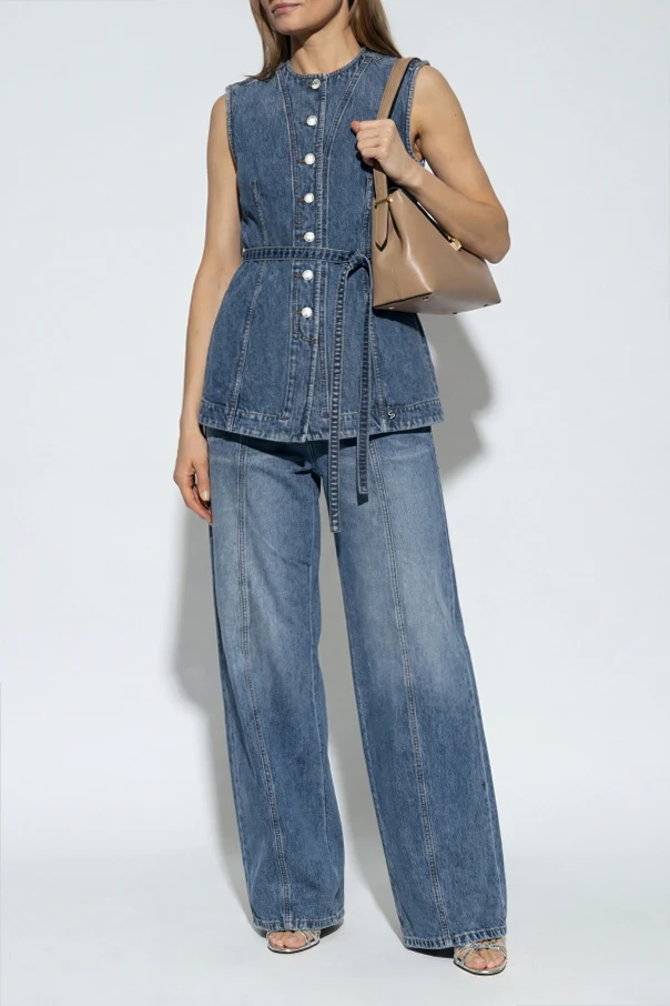 Jeansy Ora od Sportmax to wyraz najwyższej klasy współczesnego krawiectwa, w którym tradycja spotyka się z nowoczesnością. Fason z wysokim stanem i szerokimi, prostymi nogawkami podkreśla charakter całości, oferując zarazem swobodę i szyk.