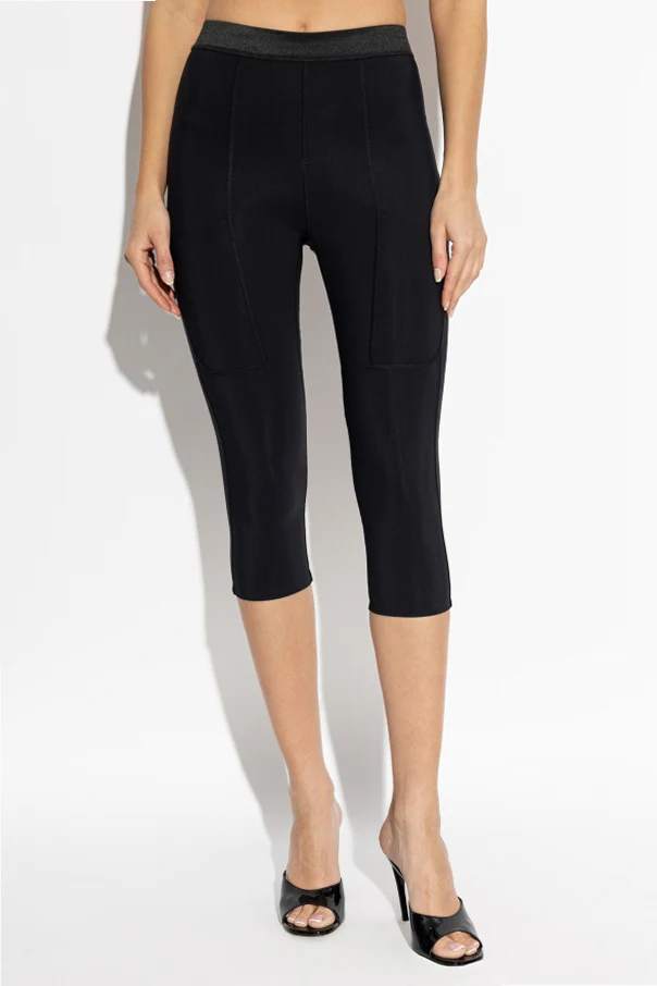 Leginsy z kieszeniami autorstwa uznanej paryskiej marki Coperni to propozycja dla kobiet ceniących wyrafinowany minimalizm oraz precyzję wykonania. Wyróżniają się gładką, czarną barwą oraz przemyślanym krojem o długości 3/4, który doskonale podkreśla sylwetkę i wysoki stan gwarantujący komfort użytkowania.