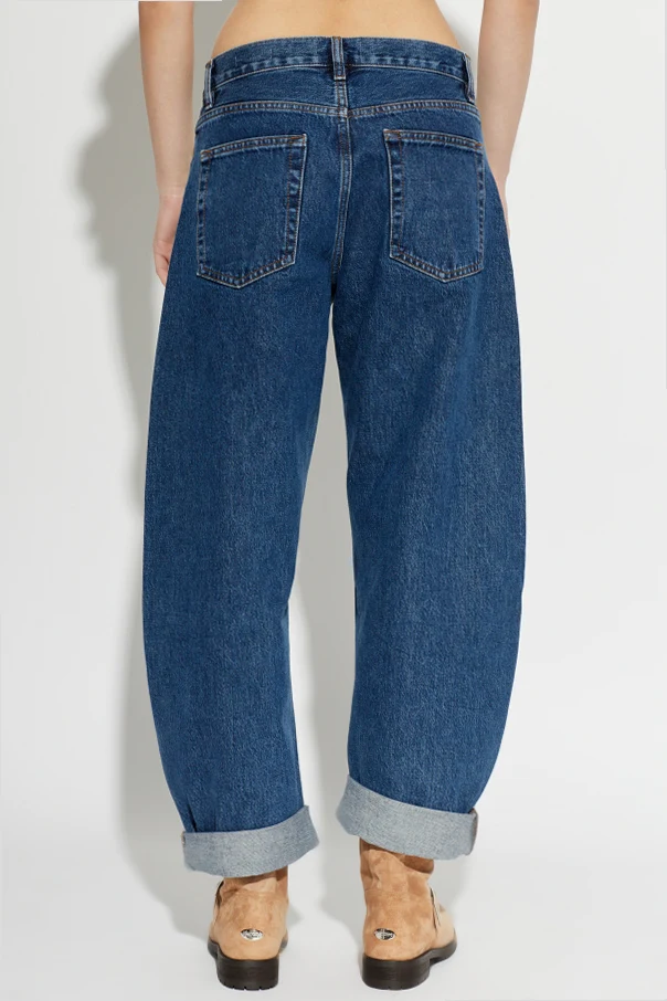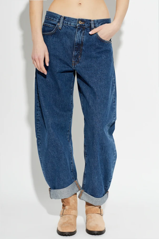 Ich luźny fason typu boyfriend harmonijnie łączy swobodę ruchu ze stylowym wyrazem. Charakterystyczne, szerokie nogawki zakończono imponującymi, wywiniętymi mankietami, które podkreślają nietuzinkowy charakter spodni. Brak widocznych napisów czy emblematów pozwala w pełni docenić minimalistyczną formę produktu.