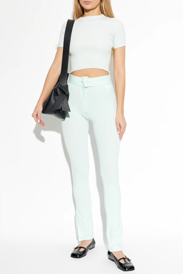 Legginsy z rozcięciem na nogawkach marki Courrèges to kwintesencja nowoczesnej elegancji zamkniętej w dopracowanym fasonie. Ich dopasowany krój eksponuje sylwetkę i zapewnia niezwykłą wygodę, natomiast wysoki stan harmonijnie podkreśla talię. Długie, lekko rozszerzane nogawki z wyraźnym, przednim rozcięciem przy kostkach nadają całości subtelnie awangardowego charakteru, zgodnego z duchem francuskiego domu mody.