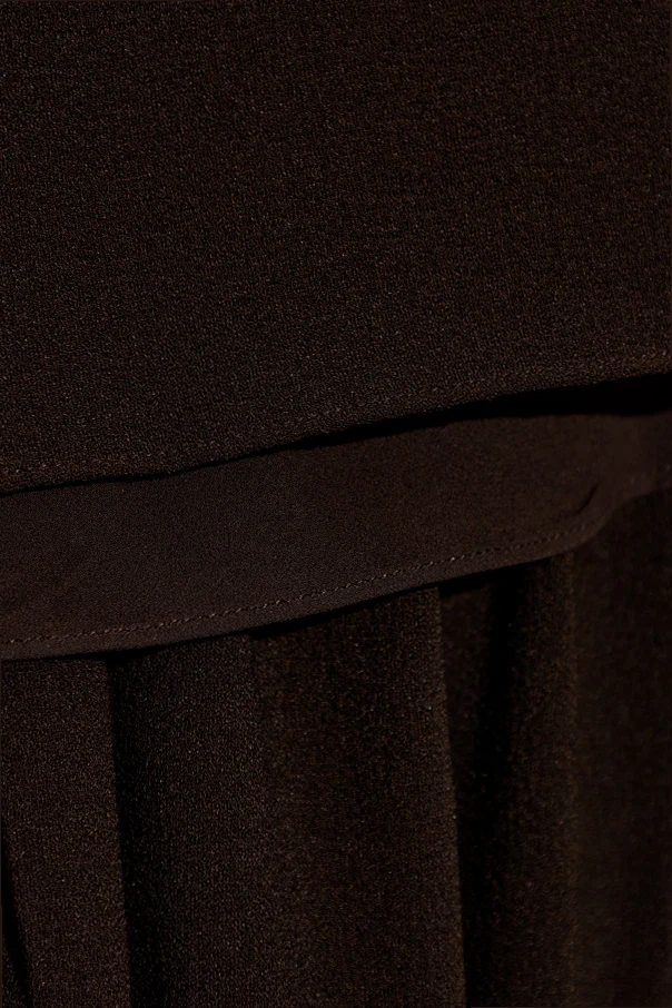 Zastosowanie mięsistej, gęsto tkanej tkaniny z wyraźnie ziarnistą fakturą nadaje topowi luksusowego charakteru, podkreślając jego stonowaną, jednolitą powierzchnię. Zmysłowe detale, takie jak lekko zaokrąglony dekolt oraz wykończony na surowo pas materiału u dołu, są subtelną ozdobą tej pozornie prostolinijnej, a jednak wyrafinowanej propozycji.
