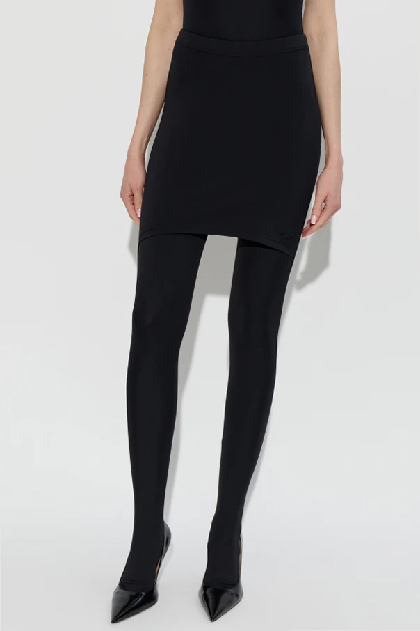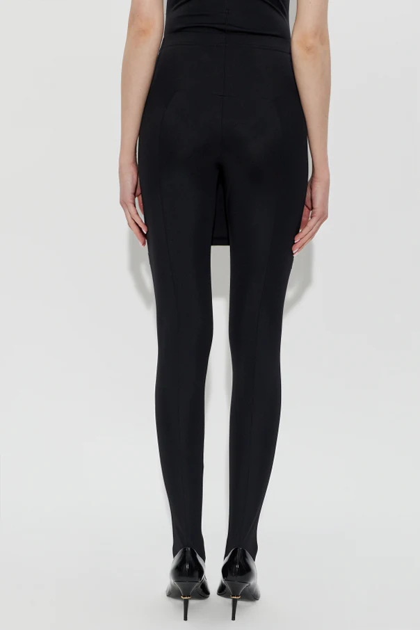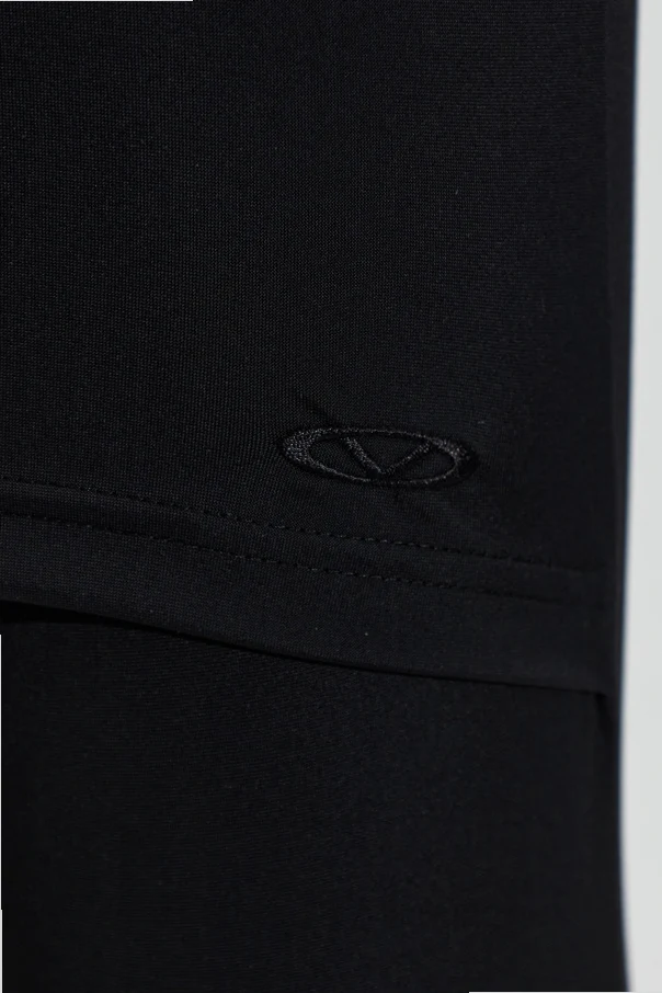 Unikatowy charakter tych legginsów nadaje dodatkowa warstwa w formie krótkiej zakładki, rozmieszczonej zarówno z przodu, jak i z tyłu, co czyni je prawdziwie designerską propozycją. Wysokiej klasy poliamid z dodatkiem elastanu gwarantuje trwałość oraz idealne przyleganie, a elastyczna talia podkreśla wygodę użytkowania. Całość wieńczy subtelny haft z logo projektanta, który doskonale odzwierciedla ekskluzywny charakter produktu.