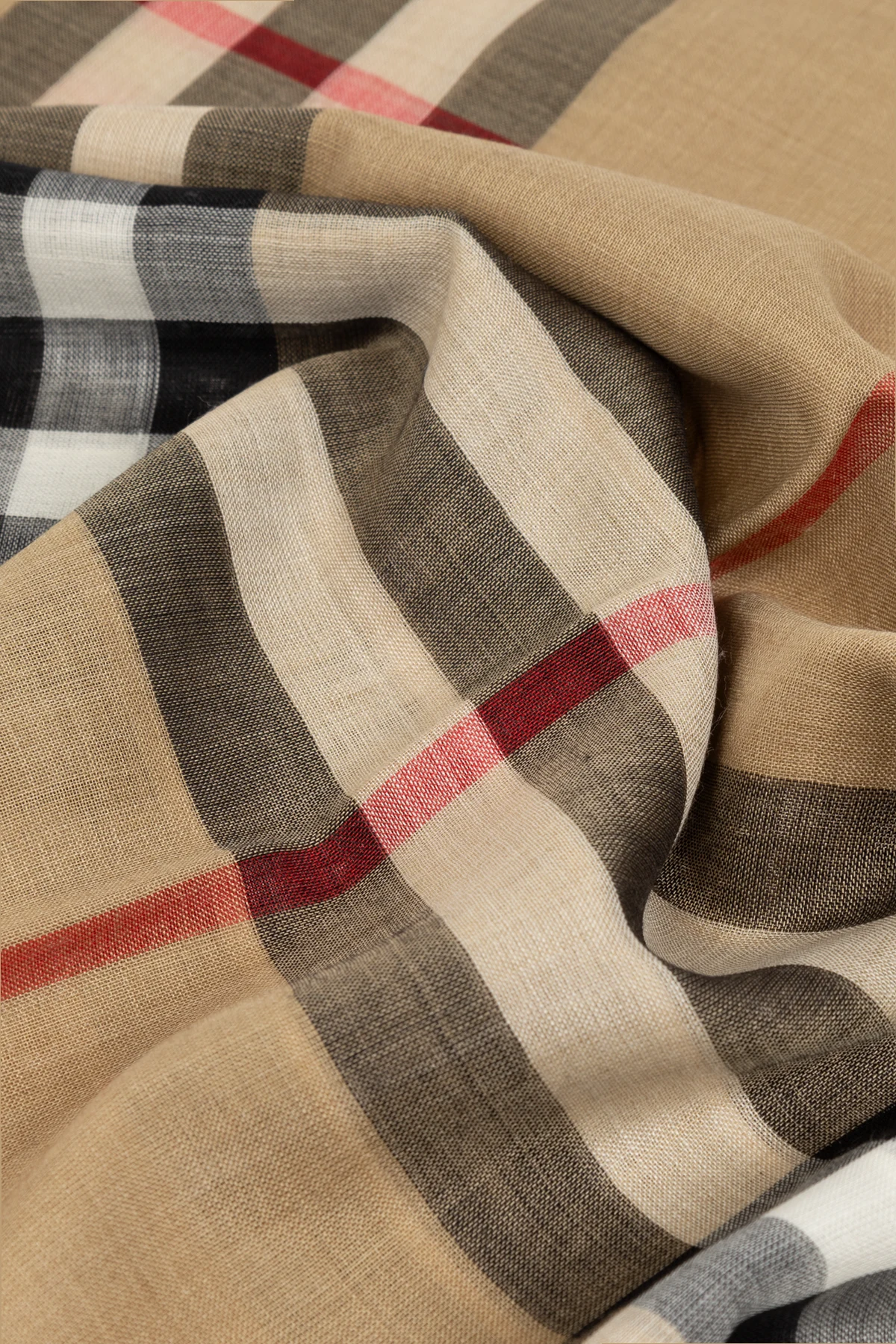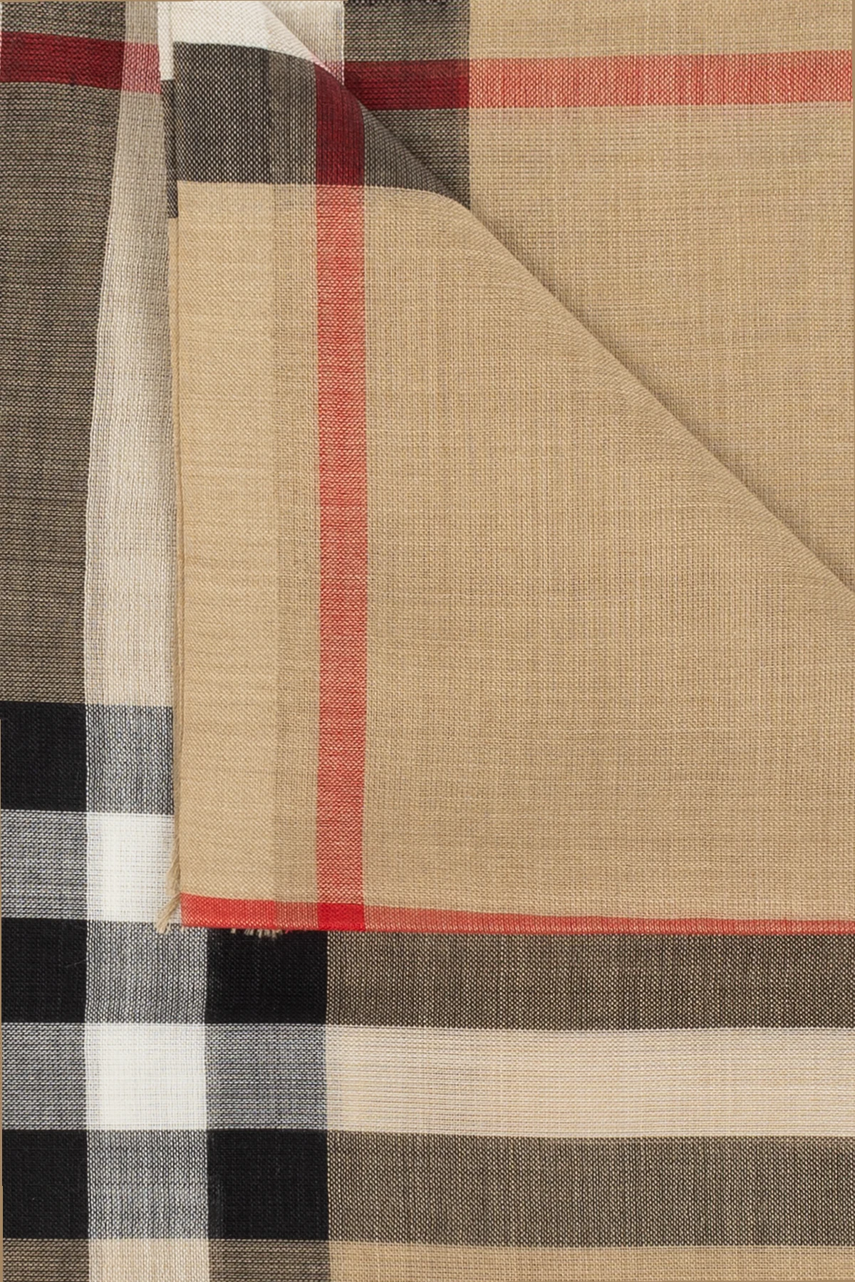 Krawędzie szala charakteryzują się surowym wykończeniem, dodającym mu lekko nieformalnego charakteru, a zarazem podkreślającym unikatowy styl. Cechą szczególną jest dyskretne podejście do branding'u, typowe dla marki Burberry , co sprawia, że szal staje się wyrafinowanym dodatkiem dla osób ceniących subtelną elegancję ponad widoczne logo.