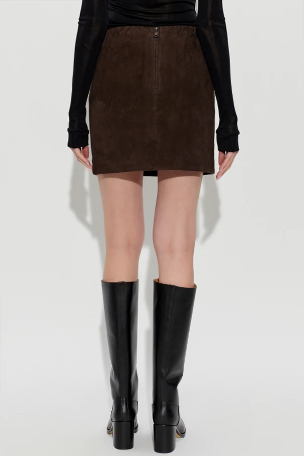 Skórzana spódnica z kolekcji domu mody ROTATE to esencja wyrafinowanego minimalizmu. Jej klasyczny, prosty krój mini , sięgający tuż przed kolano, harmonijnie podkreśla sylwetkę, a gładka, brązowa powierzchnia bez ozdób ujmuje subtelnością najbardziej wymagających estetów.