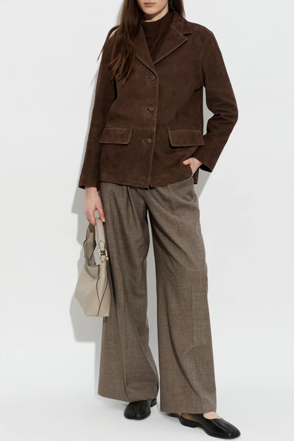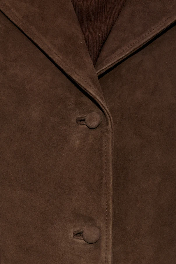 Kurtka ‘Kataline’ marki Officine Generale to wyrafinowana propozycja dla osób ceniących ponadczasową elegancję. Stworzona z wysokogatunkowej brązowej skóry zamszowej , zachwyca miękkością oraz luksusowym, matowym wykończeniem. Klasyczna, prosta linia kurtki oraz lekko luźny fason poniżej bioder subtelnie podkreślają sylwetkę, zapewniając jednocześnie wygodę noszenia.