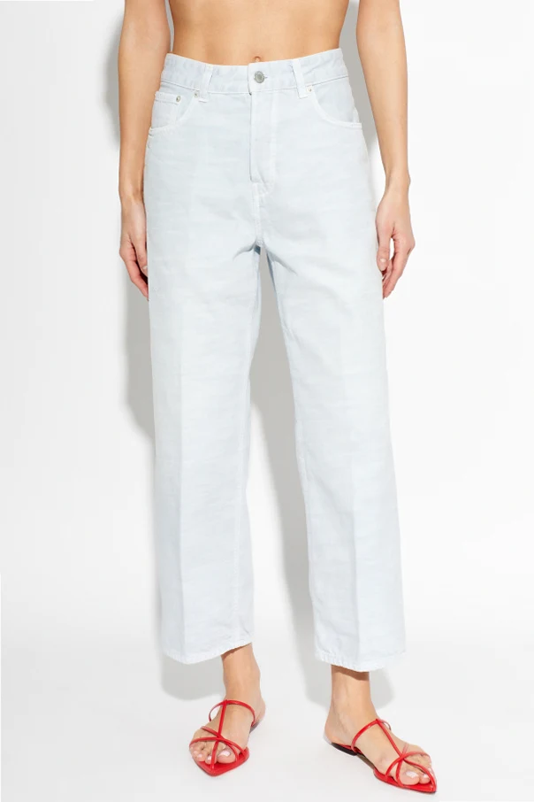 Jeansy "Betty" marki Haikure urzekają subtelną elegancją i bezpretensjonalną klasyką. Wyrafinowany, regularny fason o prostych nogawkach oraz lekko podwyższony stan zapewniają niepowtarzalny komfort, podkreślając naturalność sylwetki. Precyzyjnie wykonane z szlachetnego, nieelastycznego denimu, zachwycają wyraźną strukturą oraz delikatnym, jasnoniebieskim kolorem, który wnosi świeżość i ponadczasowy szyk.