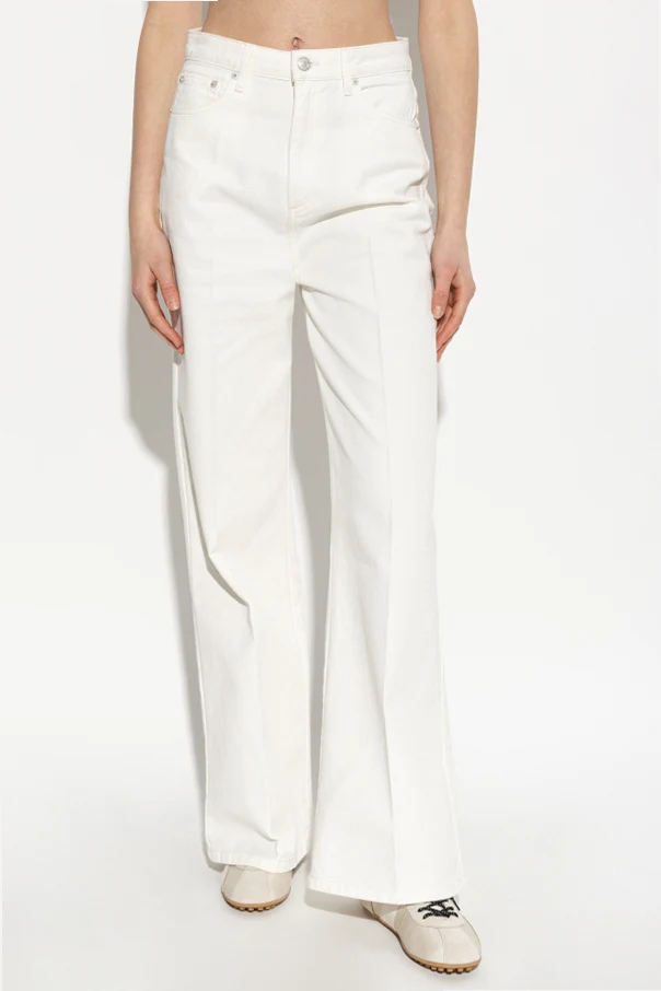 Spodnie utrzymane są w białym odcieniu, który podkreśla ich świeżość i ponadczasowy szyk. Detale takie jak charakterystyczny układ pięciu kieszeni, szlufki na pasek, solidne zapięcie na zamek oraz metalowy guzik są świadectwem rzemieślniczej precyzji. Wyrazista linia szwów na przodzie nogawek dodaje im wyjątkowego, subtelnego charakteru, a skórzana naszywka z logo projektanta stanowi dyskretny akcent luksusu.