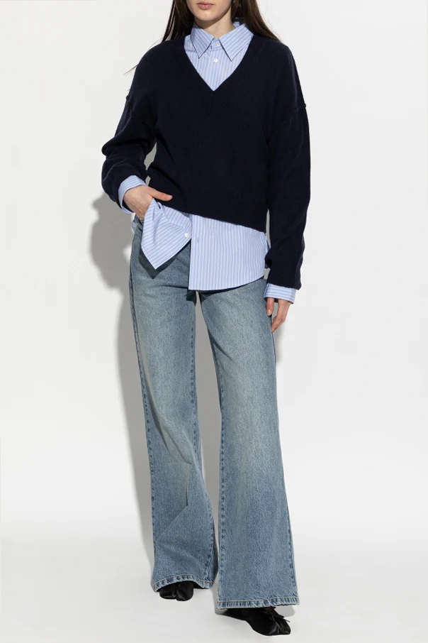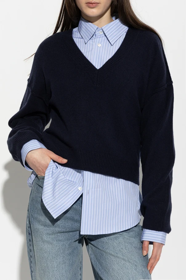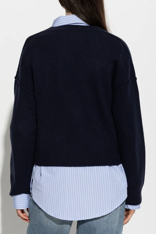 Kaszmirowy sweter ‘Misty’ od Officine Generale to esencja wyrafinowanej elegancji, osadzona w ponadczasowej formie. Granatowy odcień podkreśla wykwintny charakter dzianiny, dodając jej uniwersalności i subtelnej głębi. Model wyróżnia się klasycznym, delikatnie oversize’owym fasonem typu boxy, z obniżoną linią ramion oraz długością sięgającą ponad biodra.