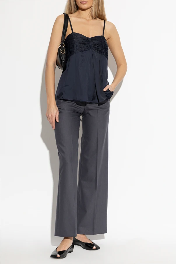 Spodnie ‘Panol’ marki Zadig & Voltaire to wyraz subtelnej elegancji w odcieniu szarym. Klasyczny, prosty fason o nieco rozszerzanych nogawkach podkreśla formalny i ponadczasowy charakter modelu, a wysoki stan z profilowaną talią oraz efektownym, szerokim pasem gwarantuje doskonałe dopasowanie do sylwetki.