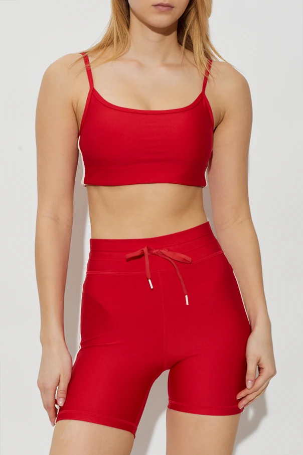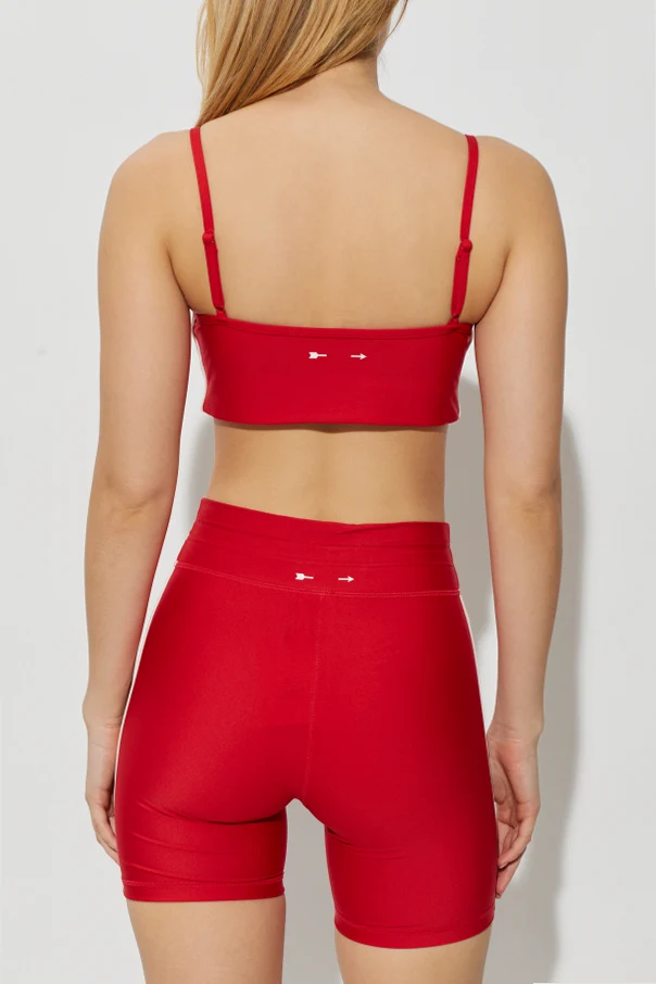 Wykonany z miękkiej, elastycznej tkaniny o lekkim połysku i właściwościach oddychających, top gwarantuje komfort noszenia nawet podczas najbardziej wymagających treningów. Gładka, jednolita powierzchnia materiału w odcieniu czerwonym świadczy o jego nieprzemijającej elegancji. Brak nadruków oraz dodatkowych przeszyć sprawia, że całość prezentuje się niezwykle szlachetnie i minimalistycznie.
