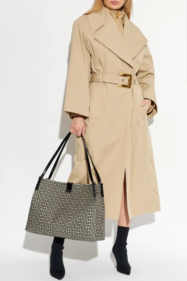 Trencz z paskiem marki Balmain to uosobienie nowoczesnej elegancji, inspirowanej szlachetną klasyką. Beżowy odcień nadaje płaszczowi subtelną wytworność i wyróżnia go wśród najbardziej ekskluzywnych propozycji sezonu.