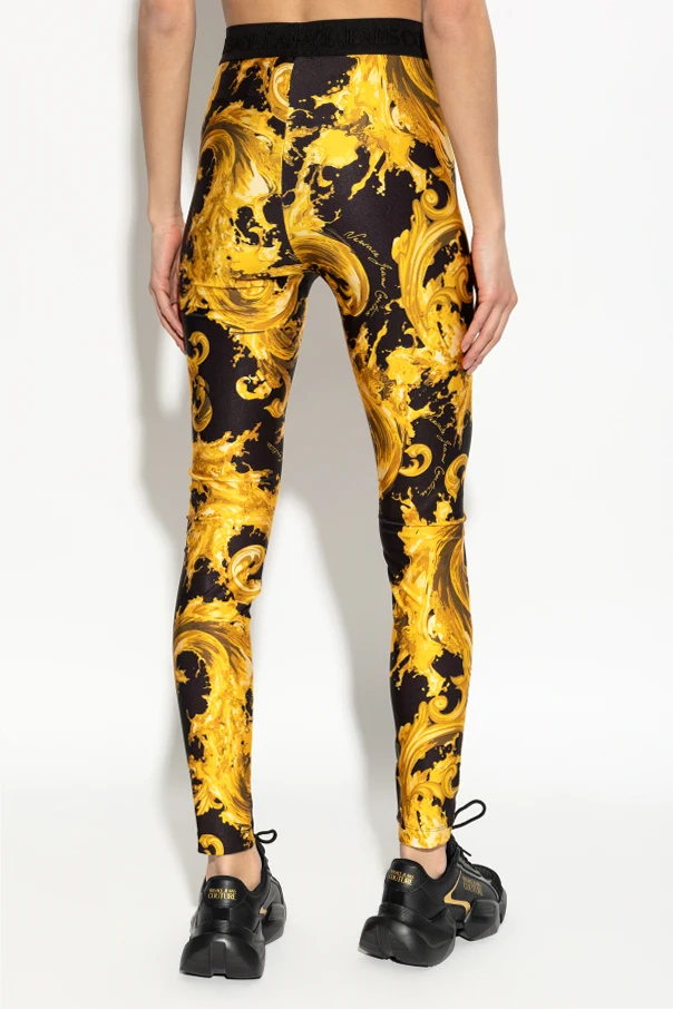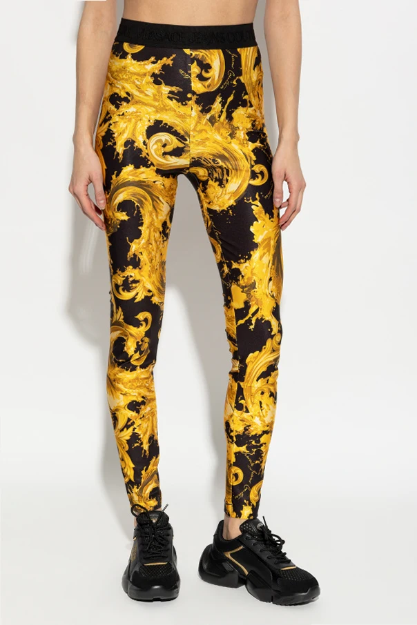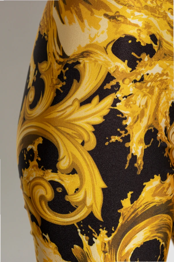 Legginsy ze wzorem ‘barocco’ od Versace Jeans Couture emanują ponadczasowym wyrafinowaniem i niewymuszoną elegancją. Ich dopasowany, klasyczny fason slim fit z pełną długością oraz wysokim stanem pięknie podkreśla kobiecą sylwetkę, dbając jednocześnie o codzienny komfort użytkowania.
