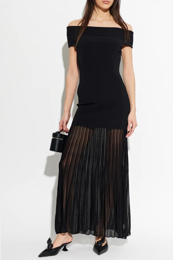 Prezentujemy sukienkę z plisowanym dołem , która urzeka niepowtarzalnym połączeniem nowoczesnej elegancji i ponadczasowej klasyki. Stworzona przez Michael Michael Kors , zachwyca długą, sięgającą do kostek formą, z prostą linią dopasowaną subtelnie w górnej części. Wytworny dekolt typu off-shoulder z szerokim pasem podkreśla ramiona, otulając je lekkim akcentem zmysłowości.