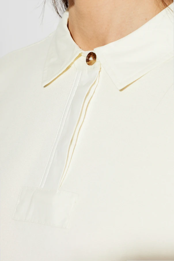 Polo z długimi rękawami marki Rag & Bone stanowi prawdziwą syntezę klasycznej elegancji i współczesnej swobody. Swobodny, lekko pudełkowy krój z wyraźnie obniżonymi liniami ramion wprowadza lekkość stylu, a gładka, matowa dzianina w kremowym odcieniu subtelnie podkreśla wyrafinowanie produktu.