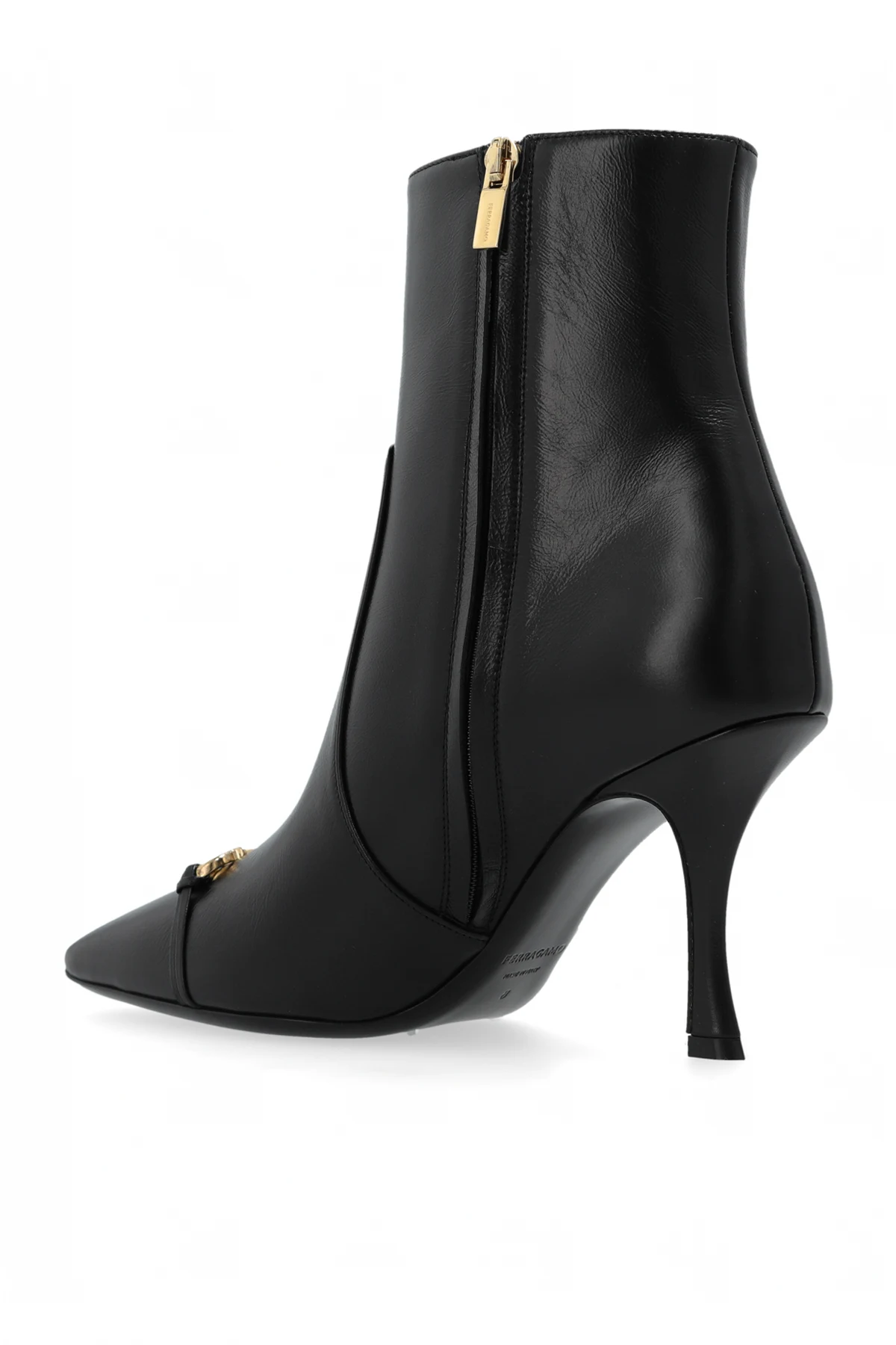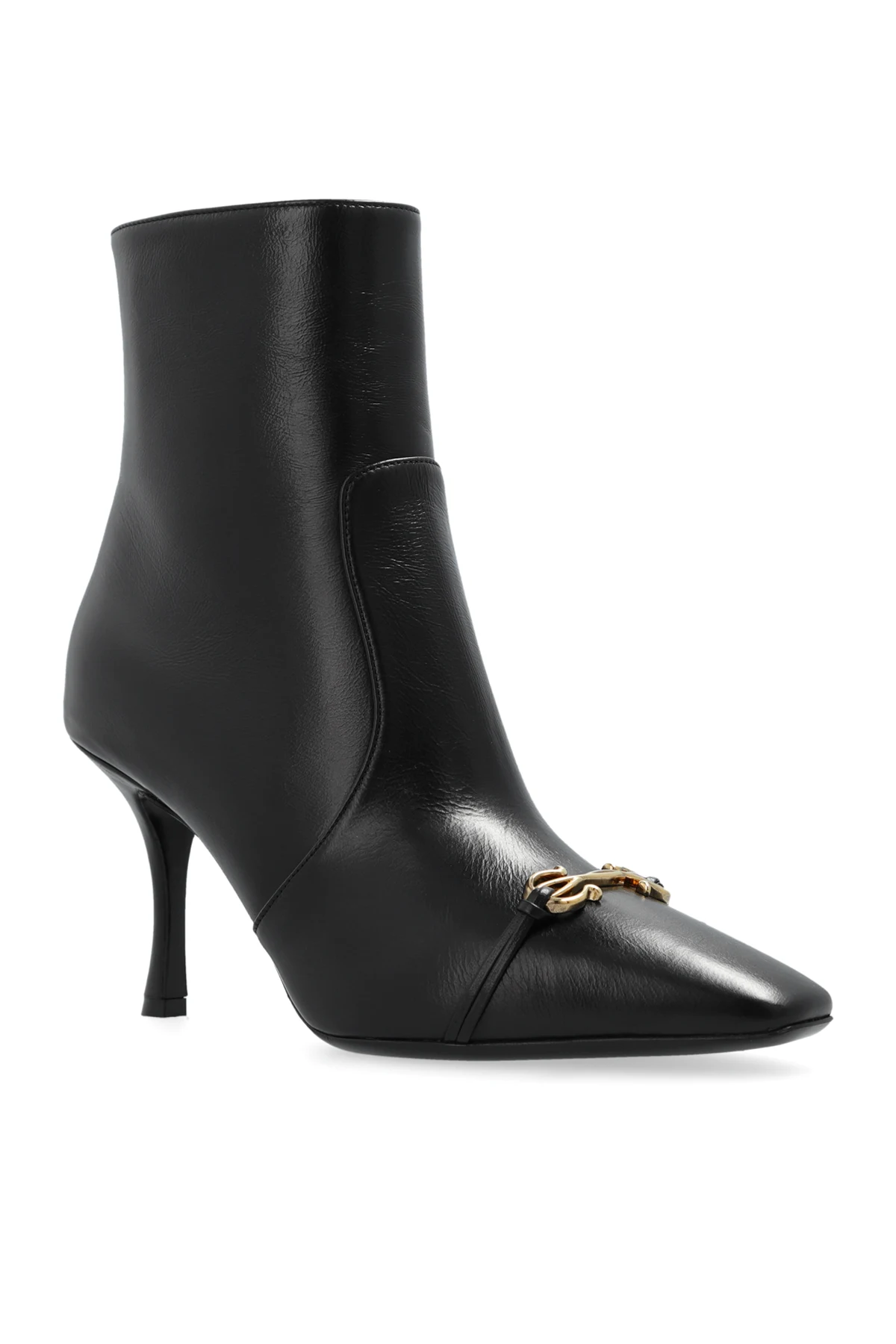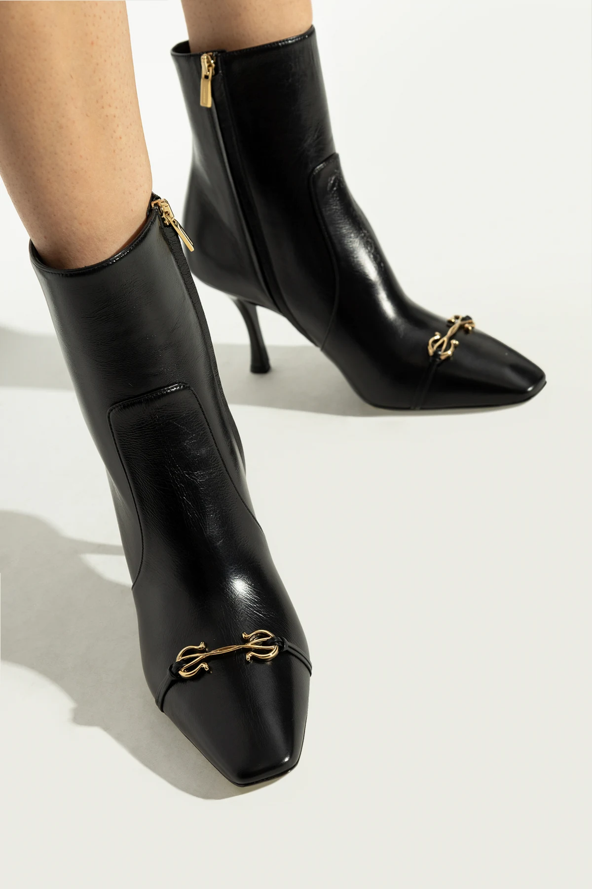 Wykonane z najwyższej jakości czarnej skóry cielęcej , botki Ludo emanują luksusem i klasą. Gładka powierzchnia skóry dodaje im wyrafinowania, a złote detale w postaci podwójnego łańcuszka na przodzie i zamka błyskawicznego z boku przyciągają wzrok i dodają subtelnej elegancji.
