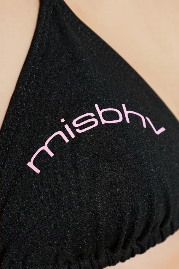 Góra od kostiumu kąpielowego marki MISBHV stanowi esencję ponadczasowej elegancji w nowoczesnym wydaniu. Klasyczna forma trójkątnego bikini z wiązaniem na szyi i plecach subtelnymi sznurkami gwarantuje idealne dopasowanie oraz wyrafinowany wygląd. Czarne, gładkie wykończenie tkaniny nadaje całości szlachetności, akcentując jednocześnie połyskliwą strukturę starannie wyselekcjonowanych materiałów. Dyskretne, jasnoróżowe logo projektanta, umieszczone na obu panelach, potwierdza nieprzeciętny charakter produktu. Niewielkie ozdoby na zakończeniach wiązań dopełniają całości, podkreślając unikalność oraz dbałość o detale.