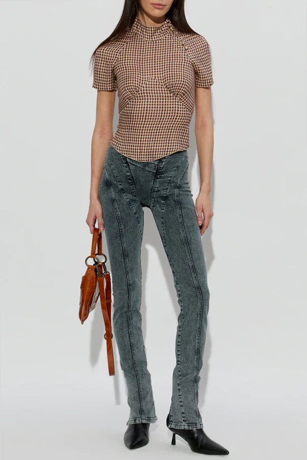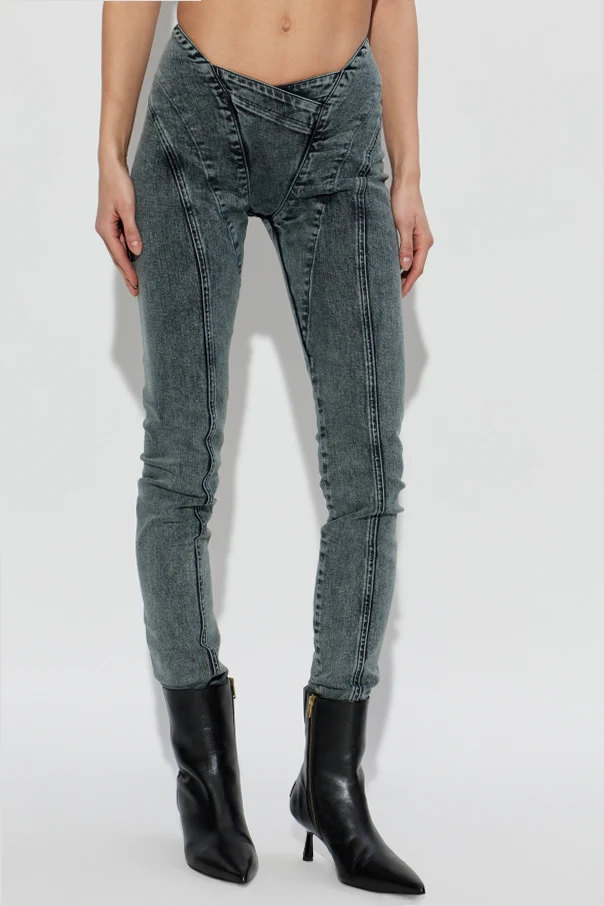 Jeansy Celet marki KNWLS to wyrafinowana propozycja dla wymagających koneserów mody. Ten niezwykle dopracowany model zachwyca perfekcyjnym dopasowaniem skinny, wąskimi nogawkami i podwyższonym stanem , który zaakcentowano geometrycznym wykończeniem w górnej części. Oryginalne, krzyżujące się wstawki przy biodrach oraz umiejscowiony z tyłu zamek czynią te jeansy wyjątkowym manifestem współczesnego designu.