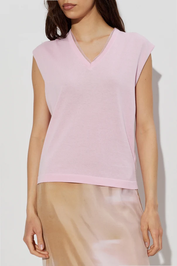 Bawełniana kamizelka autorstwa renomowanej marki Fabiana Filippi to uosobienie wyrafinowanej elegancji, inspirowanej włoską tradycją rzemieślniczą. Luźny, lekko oversize’owy fason z subtelnie opadającym na ramię krótkim rękawkiem cap sleeve zachwyca swobodnym, a zarazem szykownym charakterem. Głęboki dekolt w serek, starannie podwójnie obszyty, wydobywa szlachetność prostoty i minimalistycznej formy.
