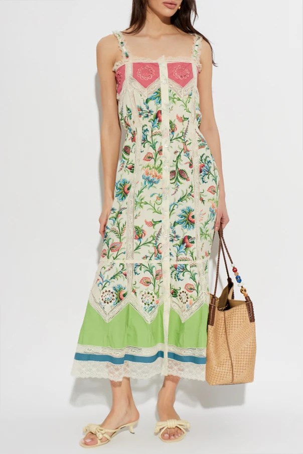 Sukienka z motywem kwiatowym marki Etro to mistrzowska oda do kobiecości i klasy. Model o długości maxi oczarowuje prostym, wydłużonym fasonem delikatnie rozszerzanym ku dołowi, który subtelnie podkreśla sylwetkę.