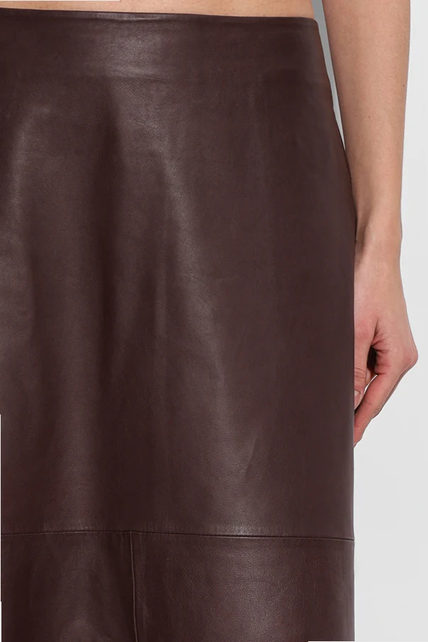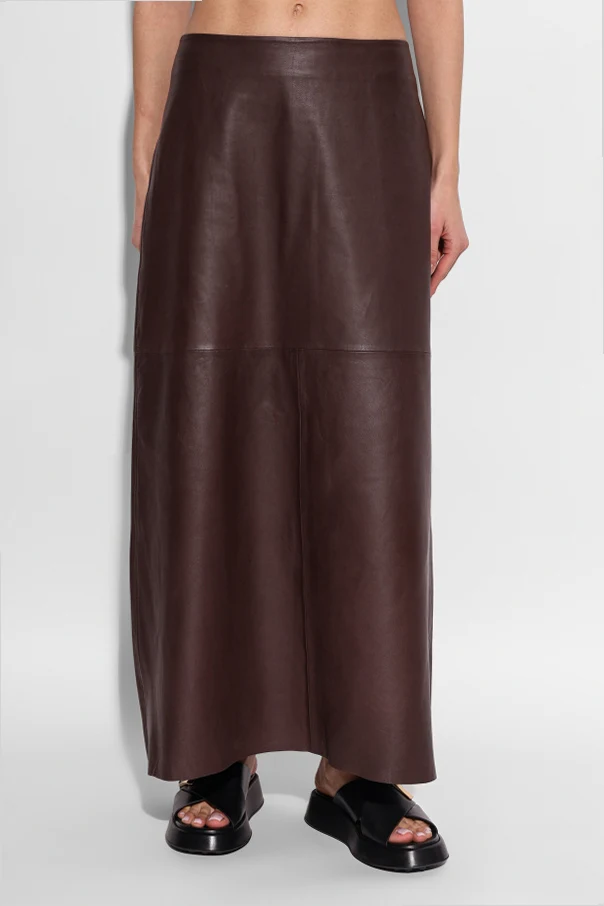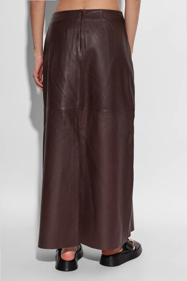 Spódnica „Sapia” duńskiej marki Samsøe Samsøe to kwintesencja ponadczasowej elegancji utrzymanej w szlachetnym kolorze bordo . Jej longowana linia, sięgająca do kostek, subtelnie rozszerza się ku dołowi, tworząc nowoczesną sylwetkę w duchu minimalistycznej estetyki. Gładka, matowa powierzchnia wysokogatunkowej skóry naturalnej podkreśla surową prostotę modelu, podczas gdy dokładnie zszywane, szerokie panele zmysłowo akcentują wyrafinowany charakter produktu.