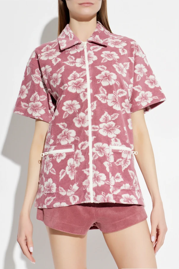 Uwagę przyciąga żywy, hawajski motyw kwiatowy na jednolitym, różowym tle, które emanuje lekkością i wyrafinowaniem. Zapięcie na zamek błyskawiczny to nietuzinkowy akcent podkreślający indywidualność fasonu. Dwie przednie, naszywane kieszenie z jasną lamówką łączą w sobie funkcjonalność i niebanalny design.