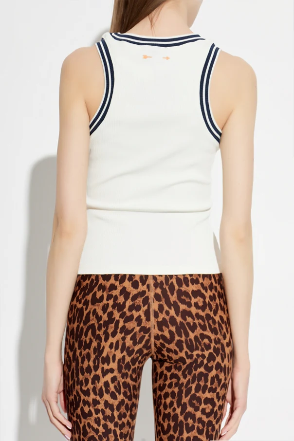 Top "Kirsty" marki The Upside to esencja nowoczesnej elegancji w odsłonie aktywnej. Perfekcyjnie przylegający do sylwetki krój typu tank z okrągłym dekoltem subtelnie akcentuje ramiona, zapewniając jednocześnie pełnię swobody ruchów. Model utrzymany jest w kremowym kolorze o gładkiej, jednolitej powierzchni, której wyrazista prążkowana faktura dzianiny podkreśla sportowy i współczesny charakter.