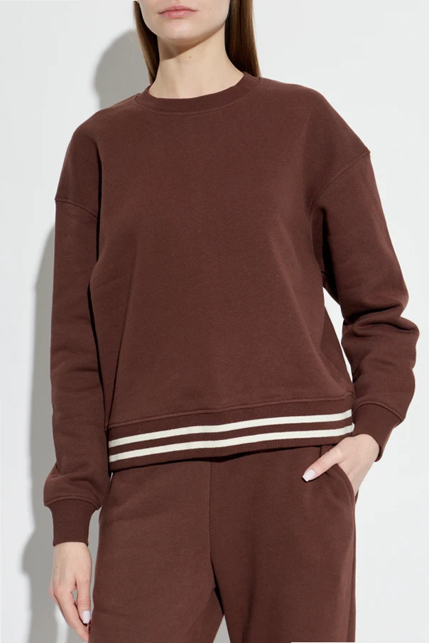 Bluza "Toluca" to synonim współczesnej elegancji w sportowym wydaniu. Utrzymana w jednolitym, głębokim brązowym kolorze, zachwyca subtelnością oraz dbałością o detale. Prosty, lekko oversizowy krój z opuszczoną linią ramion nadaje sylwetce swobodny, a jednocześnie wysmakowany wygląd. Klasyczny, okrągły dekolt z prążkowanym ściągaczem harmonizuje z szerokim ściągaczem u dołu bluzy, który zdobią wyraziste, białe pasy, podkreślające wyjątkowość projektu.