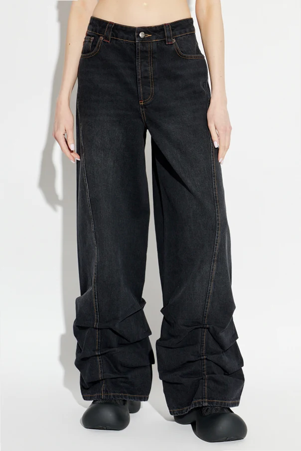 Jeansy z szerokimi nogawkami marki AVAVAV urzekają niepowtarzalnym wyrafinowaniem oraz bezkompromisowym stylem. Model ten, utrzymany w głębokiej barwie czarnej , zachwyca wyraźnie marszczonymi, bardzo szerokimi nogawkami typu wide leg/bootcut, które tworzą niezwykle efektowną sylwetkę.