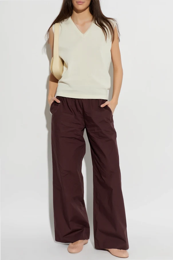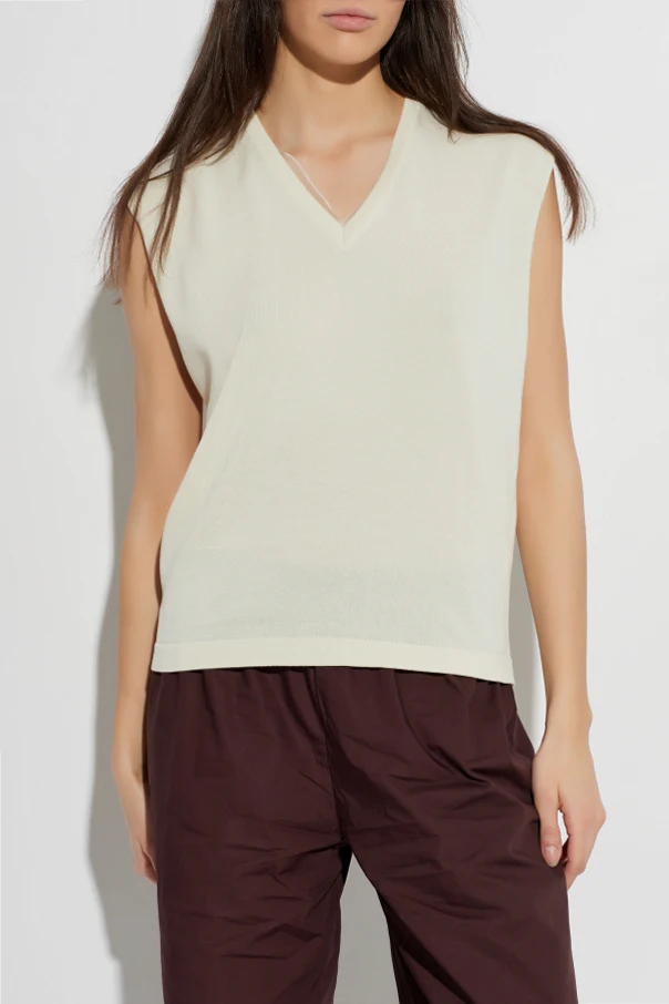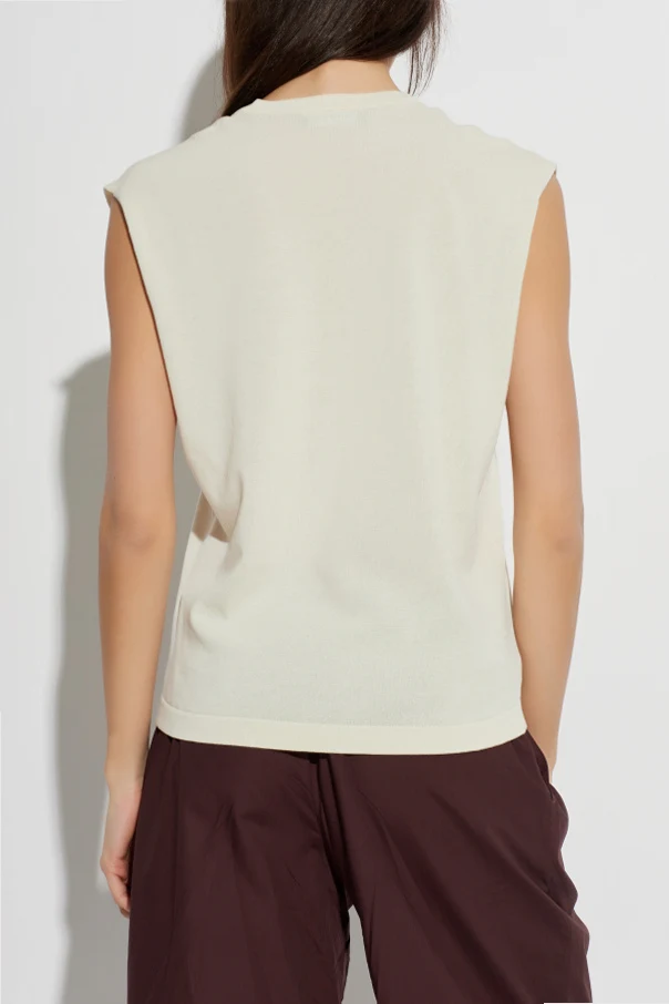 Kremowy top z kolekcji Fabiana Filippi to synonim współczesnej elegancji, inspirowanej włoską tradycją rzemieślniczą. Starannie wyselekcjonowana, lekka dzianina bawełniana przyjemnie otula sylwetkę, tworząc subtelnie przezroczysty efekt. Klasyczny, luźny fason bez rękawów oraz delikatnie rozszerzane ramiona zapewniają komfort noszenia i swobodę ruchów.