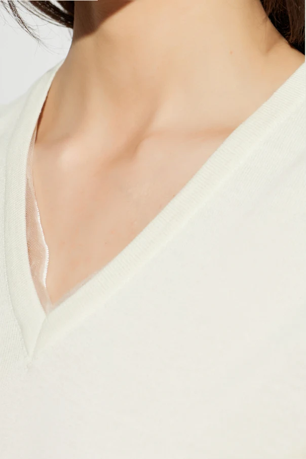 Dekolt w kształcie litery „V” został wykończony lureksową nicią , wprowadzając wysmakowaną nutę blasku oraz podkreślając unikatowy charakter produktu. Precyzyjne obszycia obrzeży świadczą o najwyższej jakości wykończenia, a brak widocznych napisów czy logo na froncie podkreśla minimalistyczną elegancję.