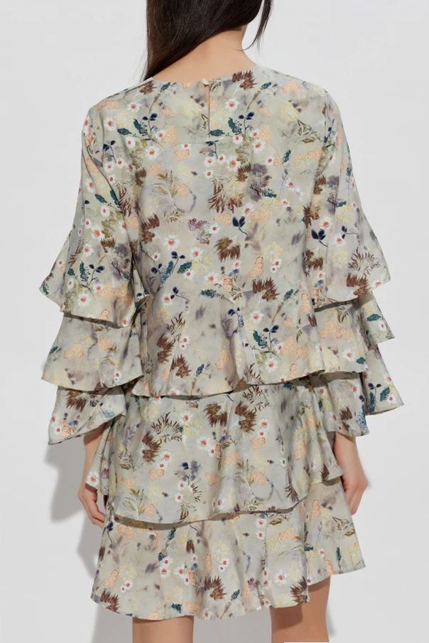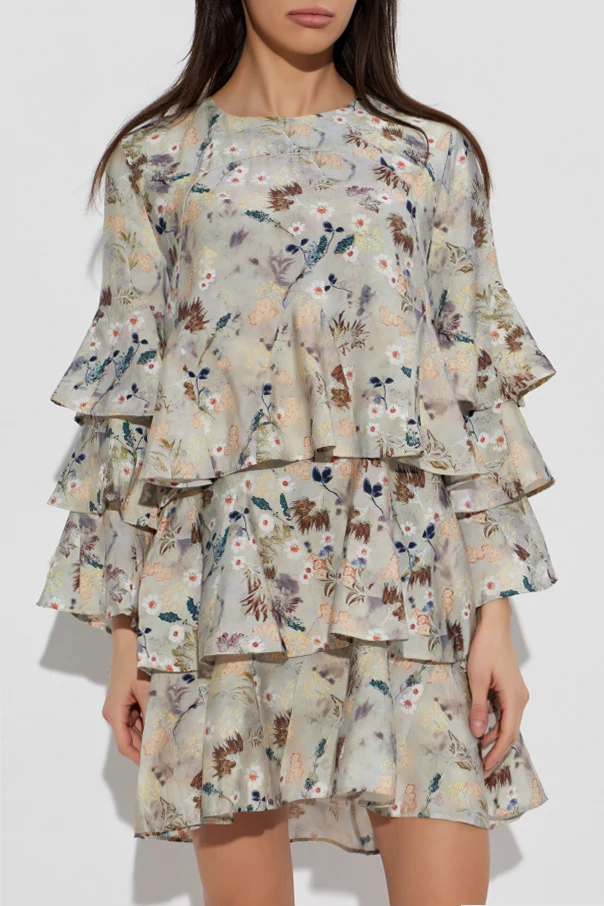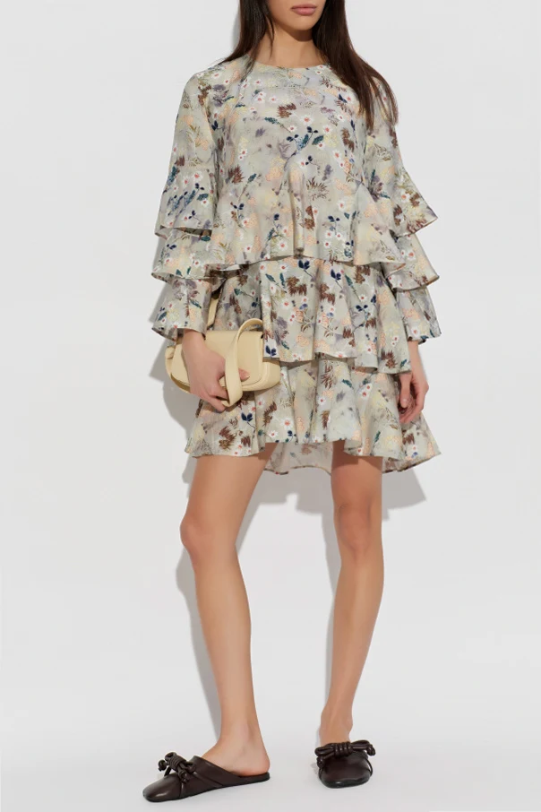 Sukienka "Brazos" marki Munthe to wyjątkowa propozycja dla koneserek wyszukanej estetyki. Ten model o luźnym, rozkloszowanym kroju zachwyca wielopoziomowymi, kunsztownie ułożonymi falbanami oraz efektownymi, szerokimi rękawami typu motyl, które w subtelny sposób podkreślają sylwetkę i nadają kreacji niepowtarzalnego wyrazu.