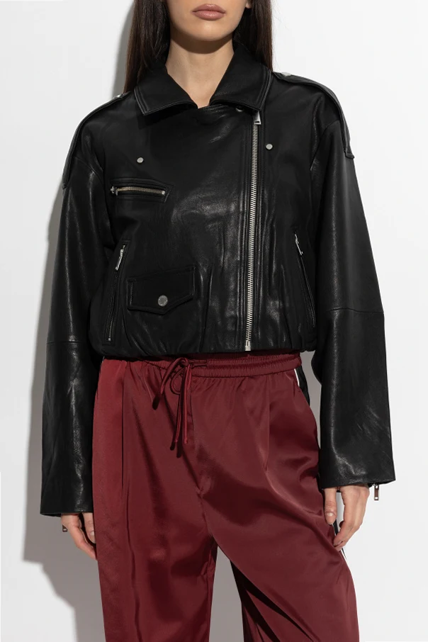 Skórzana kurtka "Gzdiana" marki Gestuz to synonim wysublimowanej elegancji, w której ponadczasowy motyw klasycznej motocyklowej estetyki spotyka się z nowoczesnym wyrafinowaniem. Uszyta z wysokogatunkowej skóry w kolorze czarnym , zachwyca subtelnym połyskiem oraz perfekcyjnym połączeniem matowych i błyszczących akcentów.