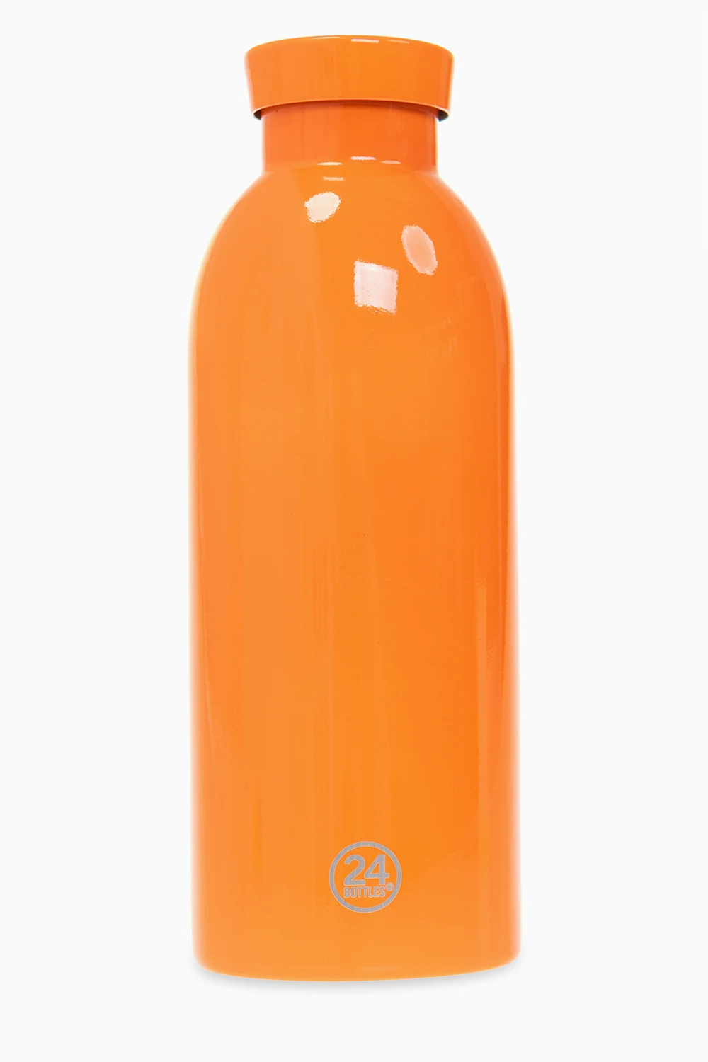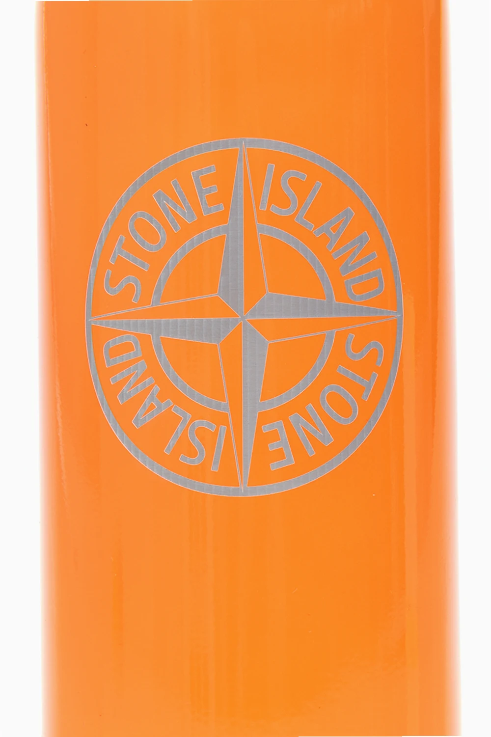 Pomarańczowa butelka termiczna wielokrotnego użytku Stone Island x 24Bottles. Butelka wykonana ze stali nierdzewnej. Logo na zakrętce. Utrzymuje ciepło do dwunastu godzin oraz zatrzymuje chłód aż do dwudziestu czterech. Produkt wolny od ftalanów, BPA oraz toksyn, nie wpływa na smak napojów. Wyprodukowana w zrównoważony dla środowiska sposób – bez emisji gazów cieplarnianych. Brązowo-czarne etui na butelkę. Wykończone skórą. Wzór z logo