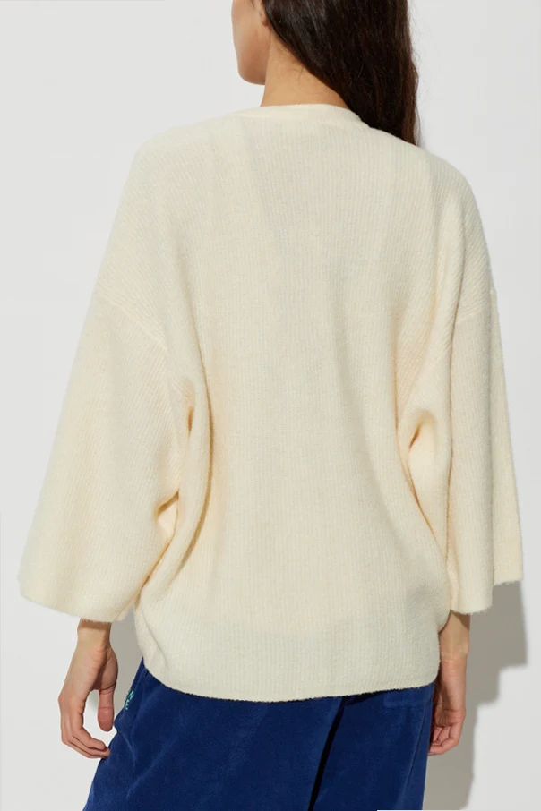 Kardigan o luźnym kroju zaprojektowany przez American Vintage to esencja współczesnej klasyki i kunsztu. Model wyróżnia swobodna, oversize’owa sylwetka z obniżoną linią ramion, lekkością dzianiny oraz szerokimi rękawami 3/4, co zapewnia wyjątkowy komfort noszenia. Głęboki dekolt w szpic podkreśla minimalistyczny, wysmakowany charakter tej propozycji.
