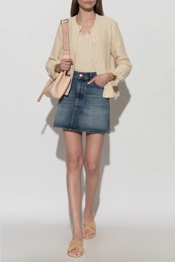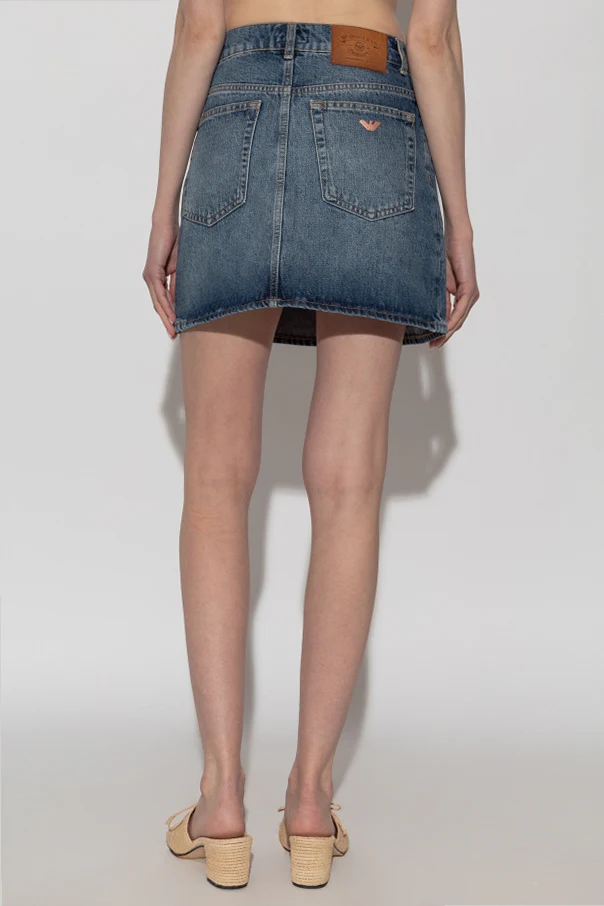 Jeansowa spódnica marki Emporio Armani to wyraz nowoczesnej kobiecości w eleganckim wydaniu. Uszyta z niebieskiego denimu o średniej grubości, zachwyca efektem sprania i cieniowania, nadając stylizacji swobodny, a jednocześnie wyrafinowany charakter.