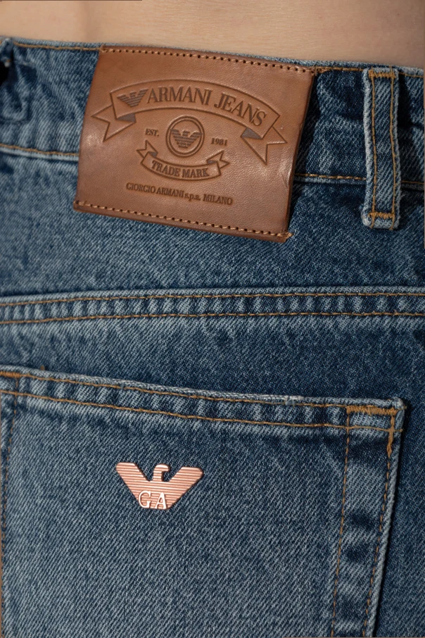 Klasyczny, prosty fason mini z subtelnie rozkloszowanym dołem prezentuje się wyjątkowo zgrabnie. Gładka faktura jest pozbawiona zbędnych zdobień, co podkreśla ponadczasową prostotę produktu. Praktyczny przód oferuje dwie kieszenie z dodatkową kieszonką na drobiazgi, natomiast tył zdobi para kieszeni, z których jedna wyróżniona jest metalowym logo orła z inicjałami „GA”. Skórzana wszywka z tłoczonym logotypem „ARMANI JEANS” dodaje całości prestiżu.